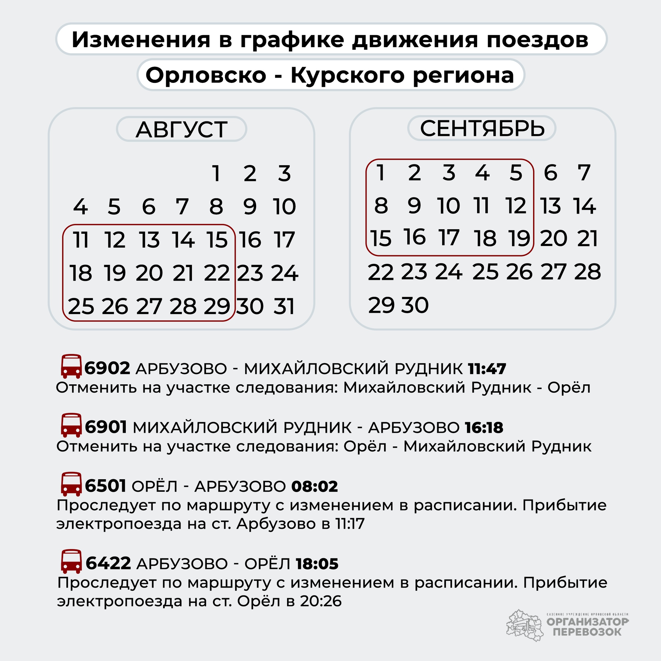 Также на орловские изменения повлияли работы, которые ведутся на станции Царицыно (расположенной на территории Москвы).