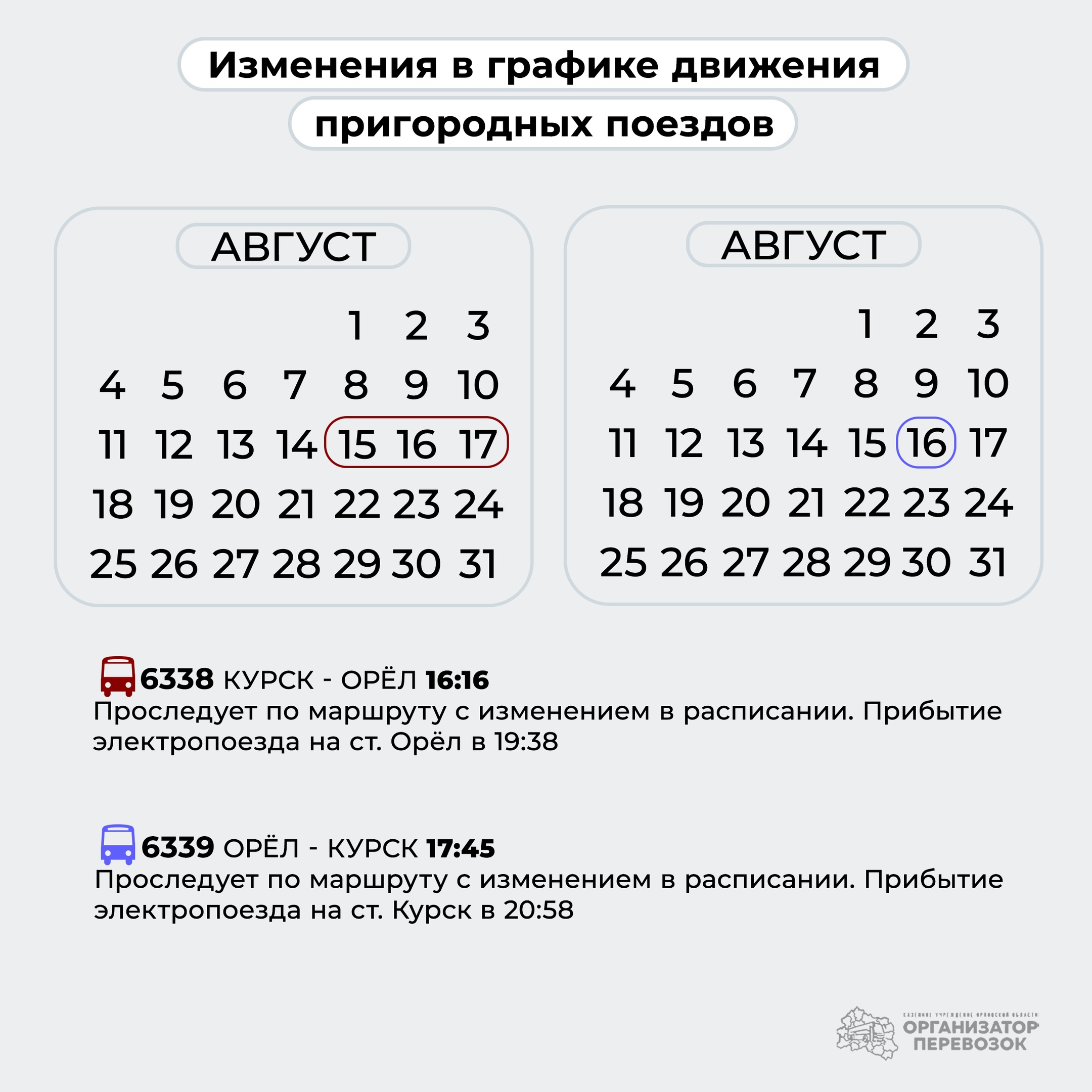 Об обновлениях в расписании электропоездов объявили в областном «Организаторе перевозок». При этом учреждение сослалось на ООО «Рэкс».
