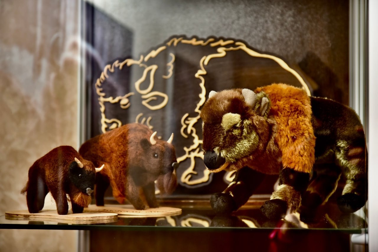 «Музей еще наполняется, но тут уже есть зубры из дерева, металла, войлока, керамики, сфотографированные и изображённые на самых разных поверхностях. Все департаменты региона внесли вклад в его формирование», – рассказал Клычков.