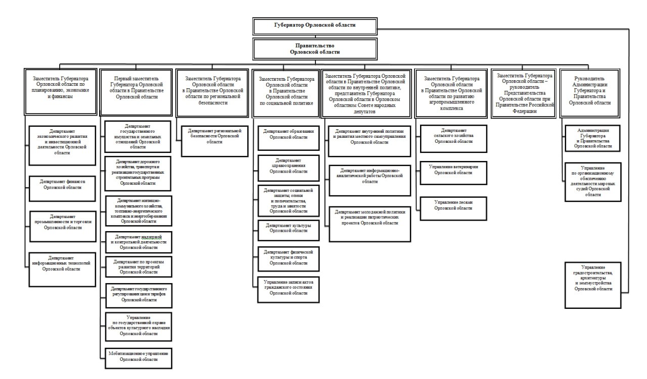 Губернатор также внес изменения в положение о системе и структуре органов исполнительной власти Орловской области. В нее, прежде всего, входят сам губернатор, правительство и администрация губернатора и правительства. Это высшая ступень, а уровнем ниже располагаются департаменты, который теперь стало 20: департамент внутренней политики и развития местного самоуправления; департамент госимущества и земельных отношений; департамент госрегулирования цен и тарифов; департамент дорожного хозяйства, транспорта и реализации государственных строительных программ; департамент жилищно-коммунального хозяйства, топливно-энергетического комплекса и энергосбережения; департамент здравоохранения и др.