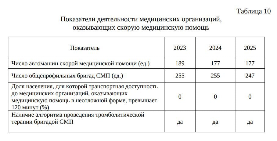 Документ интересен тем, что в нем анализируется текущее положение дел. Из него следует, что в 2023 году на территории Орловской области работало 189 автомашин скорой медицинской помощи, а в 2024 и 2025 году их количество сократилось до 177. Число общепрофильных бригад СМП сократилось с 255 в 2024 году до 247 в 2025 году (по состоянию на 1 апреля 2025 года). «Вылеты санитарной авиации по профилю «кардиология» и «сердечнососудистая хирургия» в регионе не осуществляются ввиду территориальной компактности региона», – следует из документа.