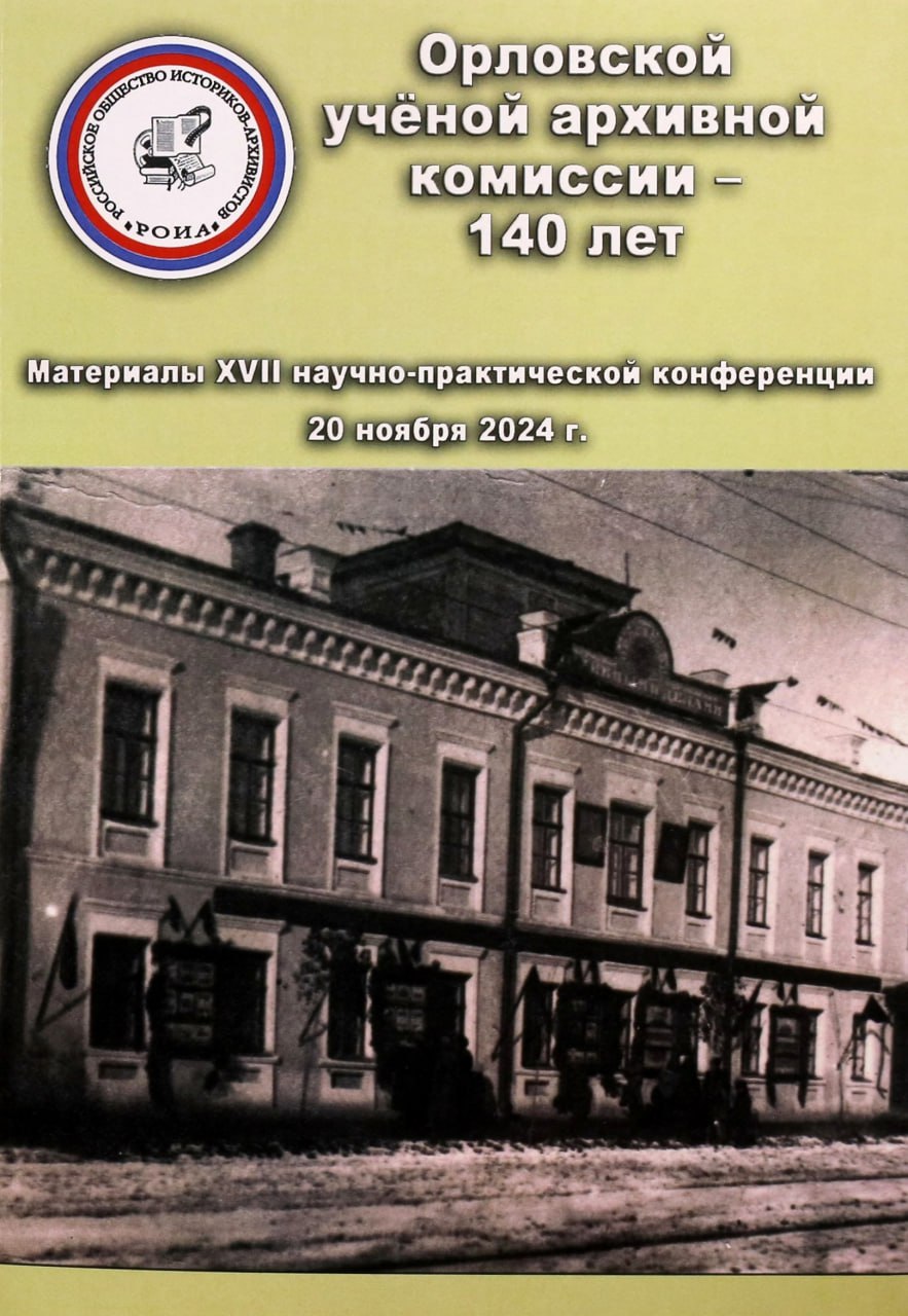 Речь идет о сборнике материалов 17-й научно-практической конференции, которая ровно год назад прошла в Государственном архиве Орловской области (ГАОО). Издание выпустило орловское издательство «Картуш». В сборник включено 18 докладов и сообщений, прозвучавших на конференции, в том числе: «Орловская ученая архивная комиссия и ее деятели», «Орловская архивная комиссия – первая среди равных», «Предпосылки становления архивной службы в Калужской губернии (конец ХIХ — первая четверть ХХ вв.), «От печали до радости» (Орловская ученая архивная комиссия в 1901-1905 гг.) и др.