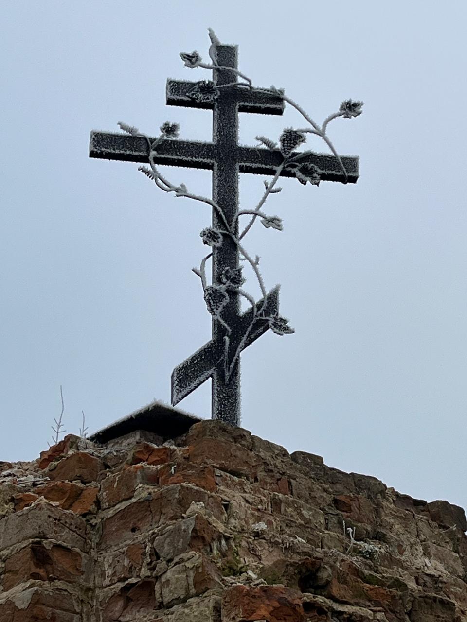 Символ православия изготовили из металла. Средства собрали местные жители. Крест будет напоминать о молитвах, которые совершались на этом месте.