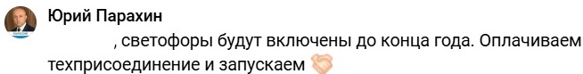 «Светофоры будут включены до конца года. Оплачиваем техприсоединение и запускаем», – ответил Юрий Парахин.