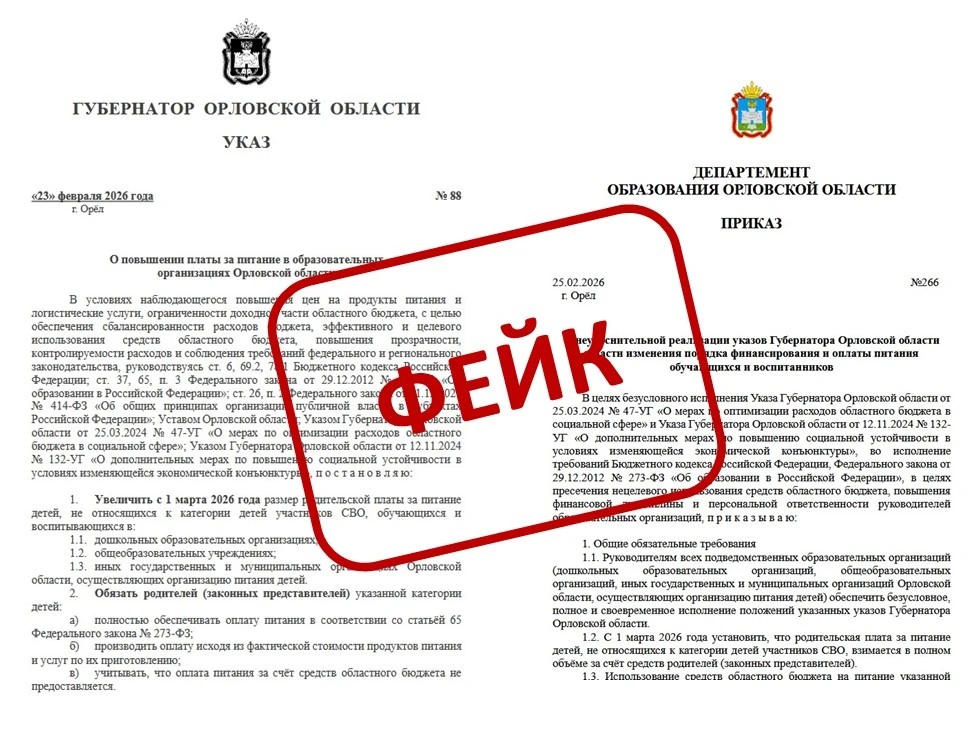 Орловцев просят не доверять непроверенным данным и пользоваться только сведениями, которые публикуются на официальных ресурсах исполнительной власти и образовательных учреждений. Также в мессенджере МАХ работает региональный канал «Антифейк», куда можно сообщать о подобных подделках.