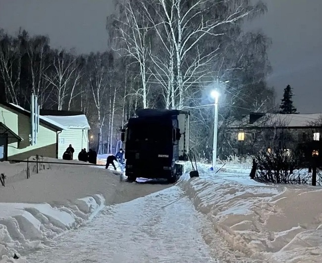 На этот раз в снежном плену оказалась уже сама машина медиков. «Скорая» забуксовала. Чтобы исправить ситуацию, пришлось экстренно разгребать снег — причём в этом процессе «участвовал» мальчик доподросткового возраста.
