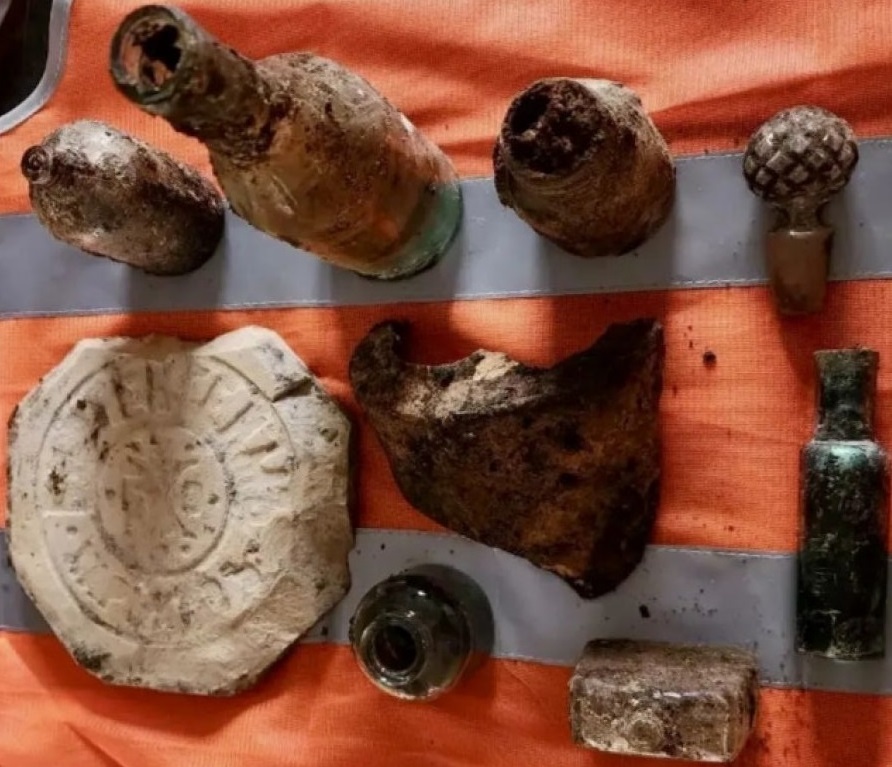 В ходе этих работ были найдены: плитка с клеймом (предварительно, не «моложе» начала двадцатого века), стеклянные бутылки, осколки глиняного сосуда, а также кирпич, на который могли воздействовать высокими температурами (частично остеклённый).