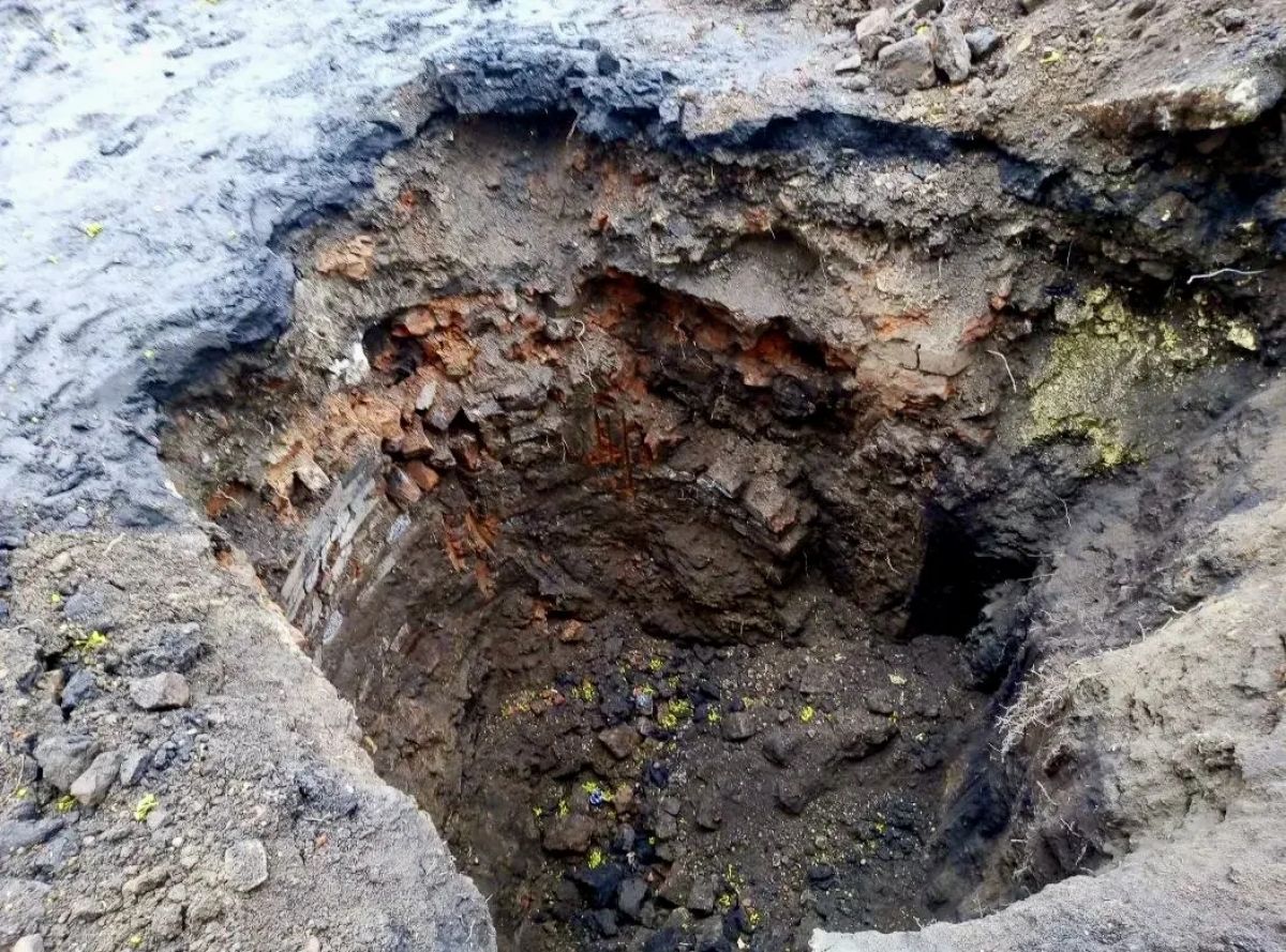 Рабочие, снимая асфальтовое покрытие, обнаружили старый кирпичный колодец. Началась расчистка участка.