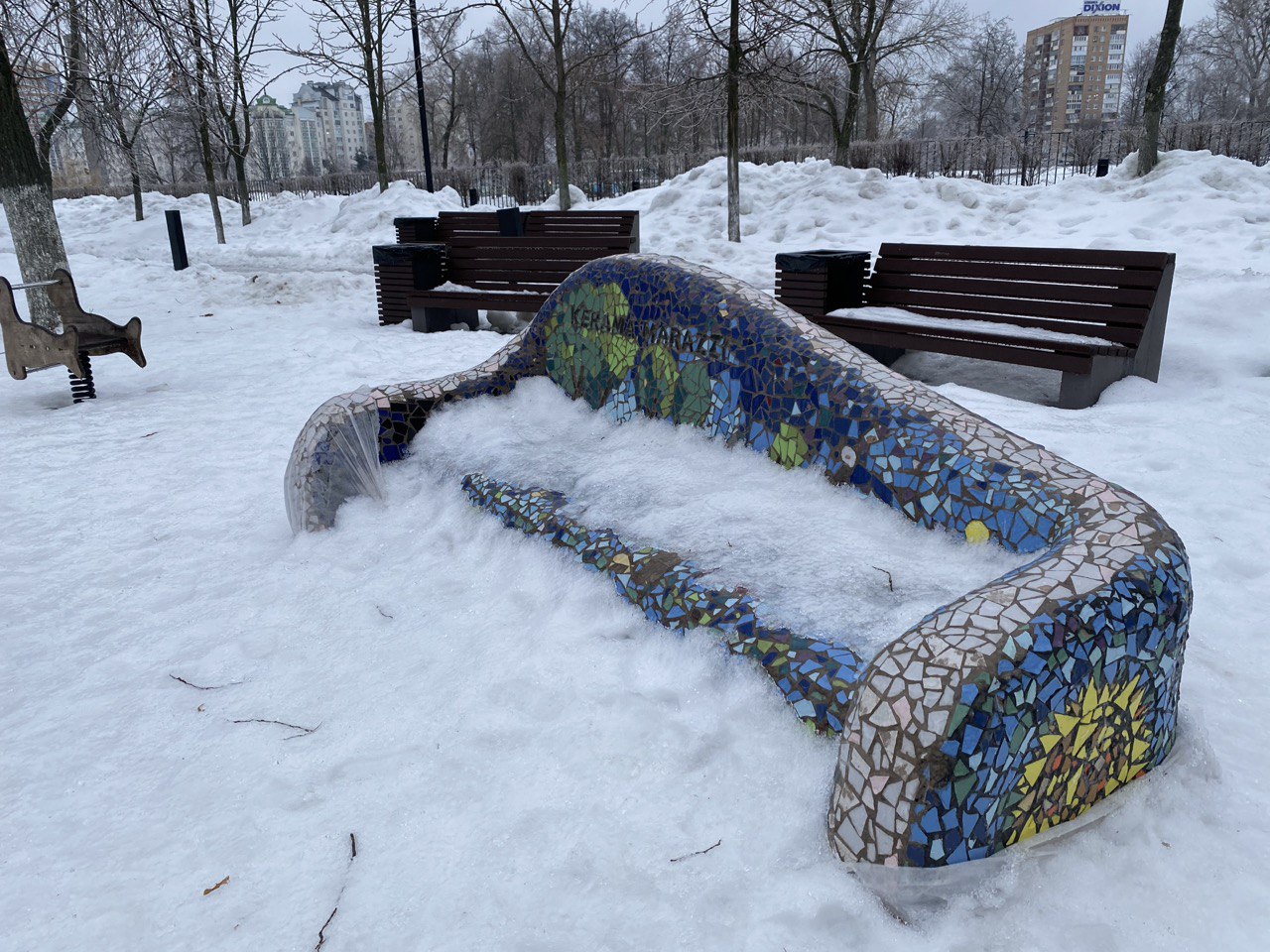 скамейка из мозаики