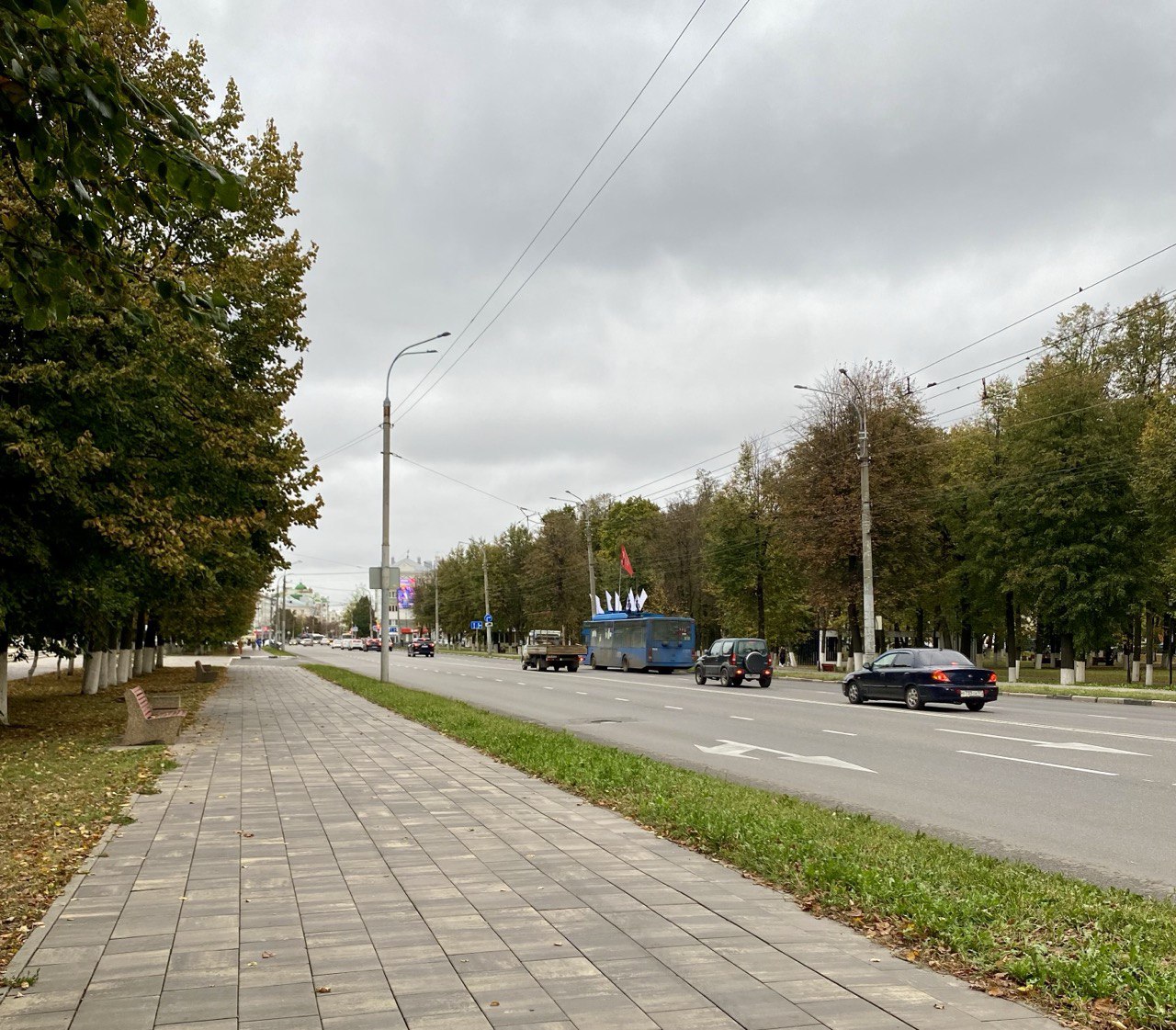 Комсомольская, сквер Комсомольцев, осень, тучи, плитка тротуар